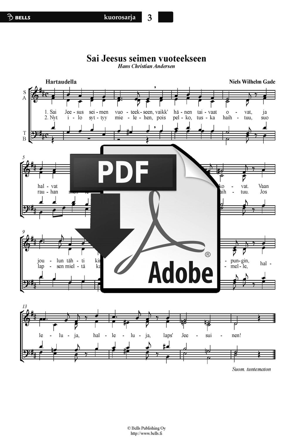 Gade, Niels W.: Sai Jeesus seimen vuoteekseen (Chor)