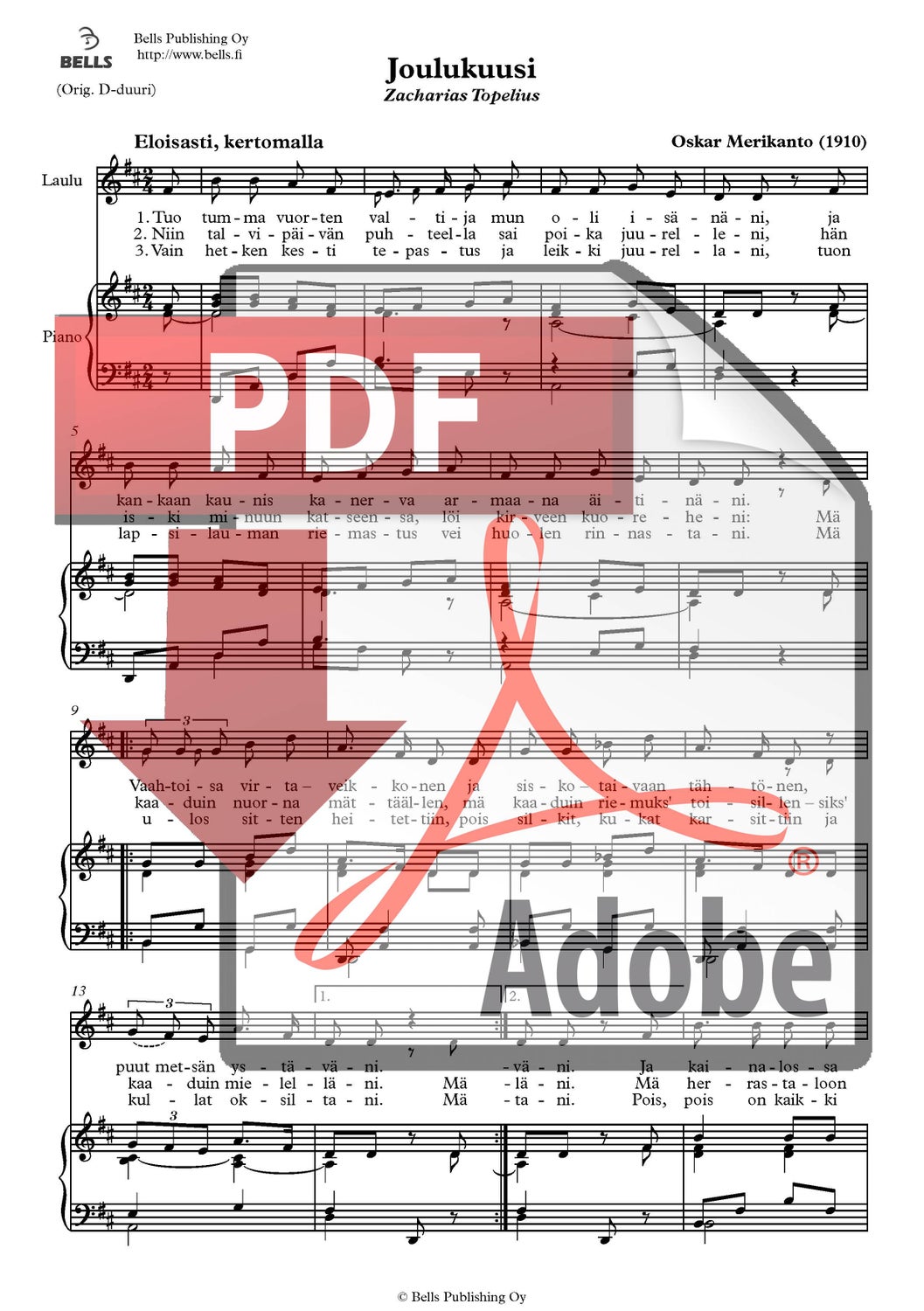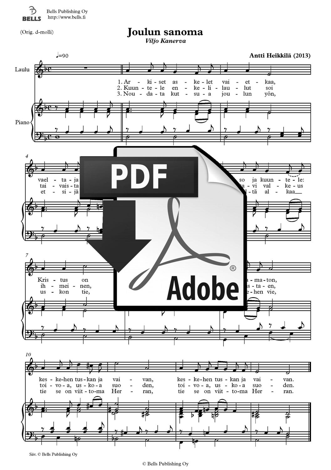 Parviainen, Lauri: Joulun kellot (Singstimme und Klavier)