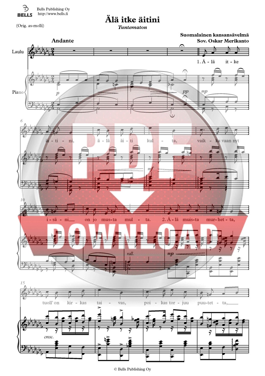 Trad. (Arr. Oskar Merikanto): Älä itke äitini