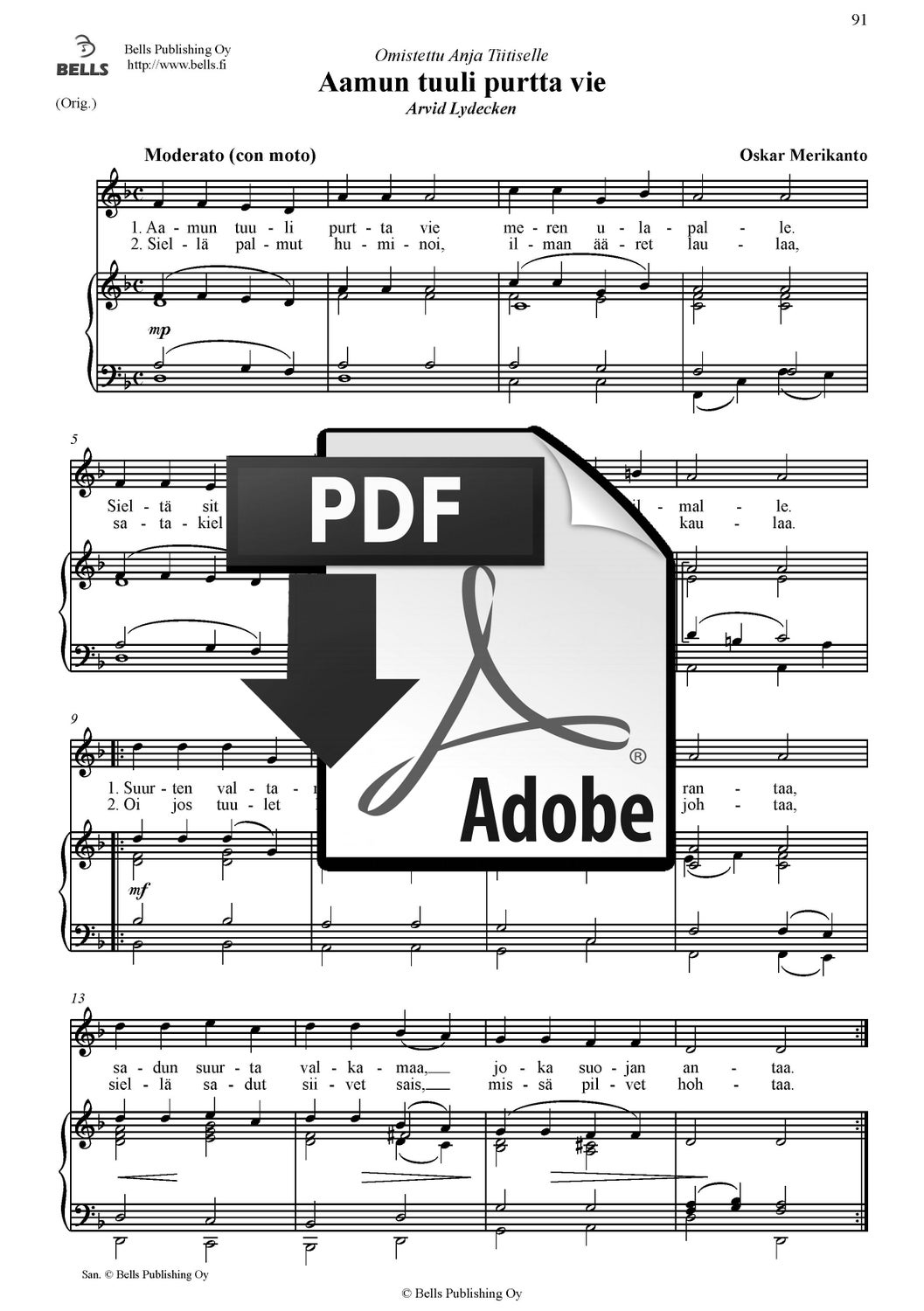 Merikanto, Oskar: Aamun tuuli purtta vie