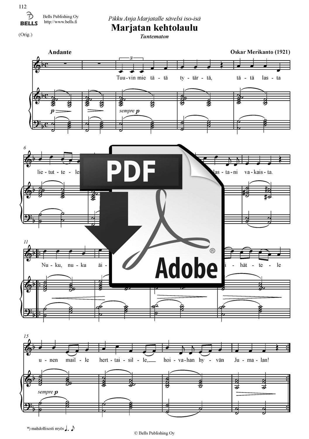 Merikanto, Oskar: Marjatan kehtolaulu (1921)