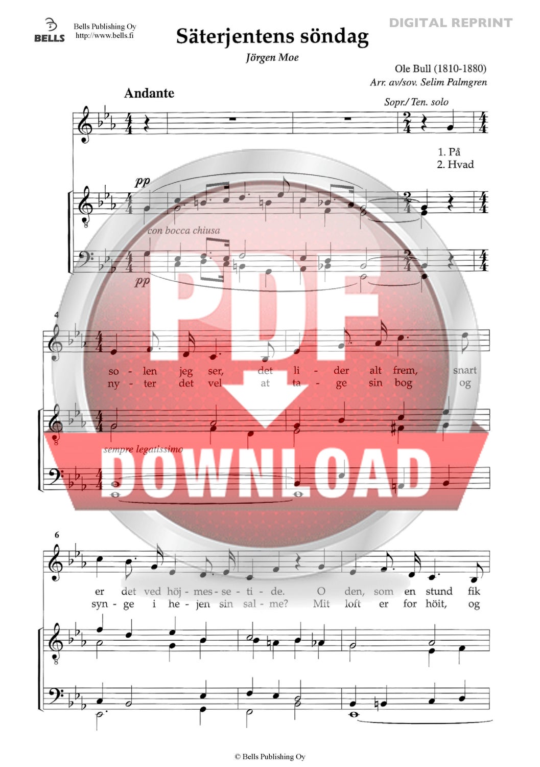 Bull, Ole (Arr. Selim Palmgren): Sæterjentens Søndag (Männerchor)