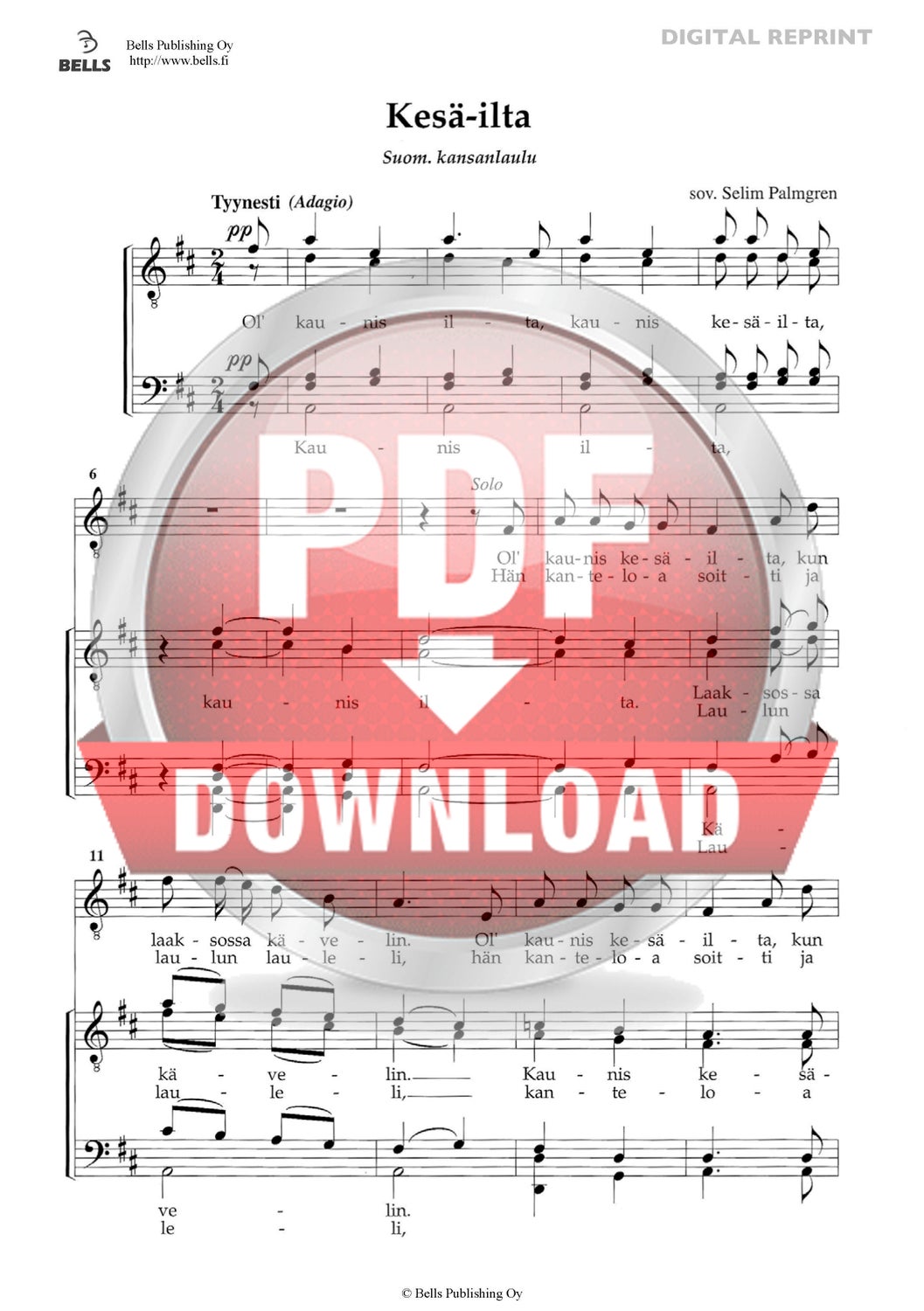 Trad. (Arr. Selim Palmgren): Kesä-ilta (Männerchor)