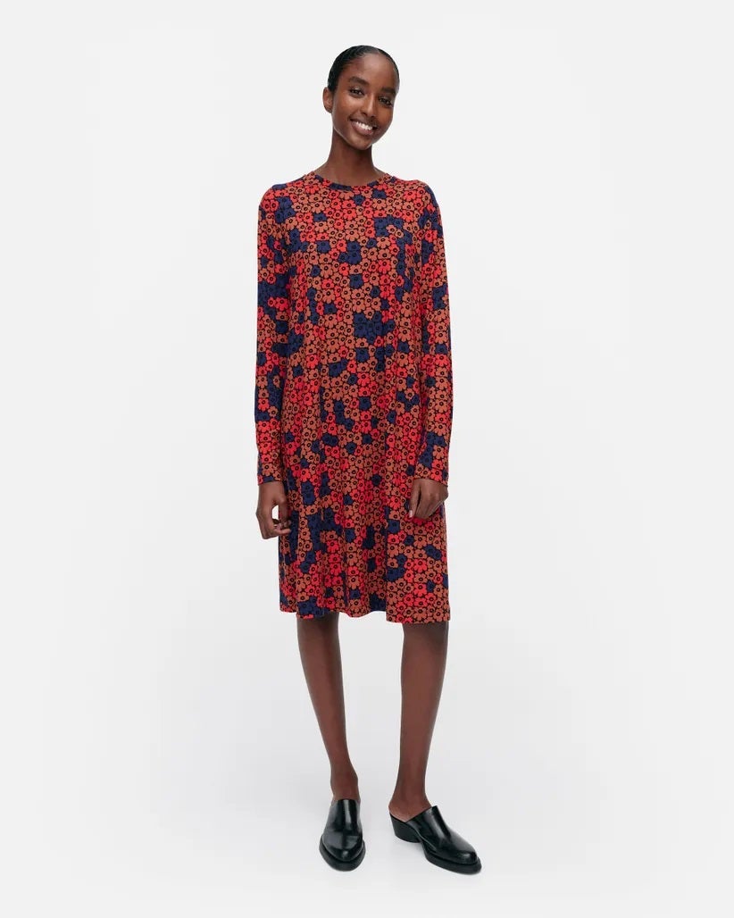Lehtokielo Unikko Trikoomekko (viin.pun-punainen)
