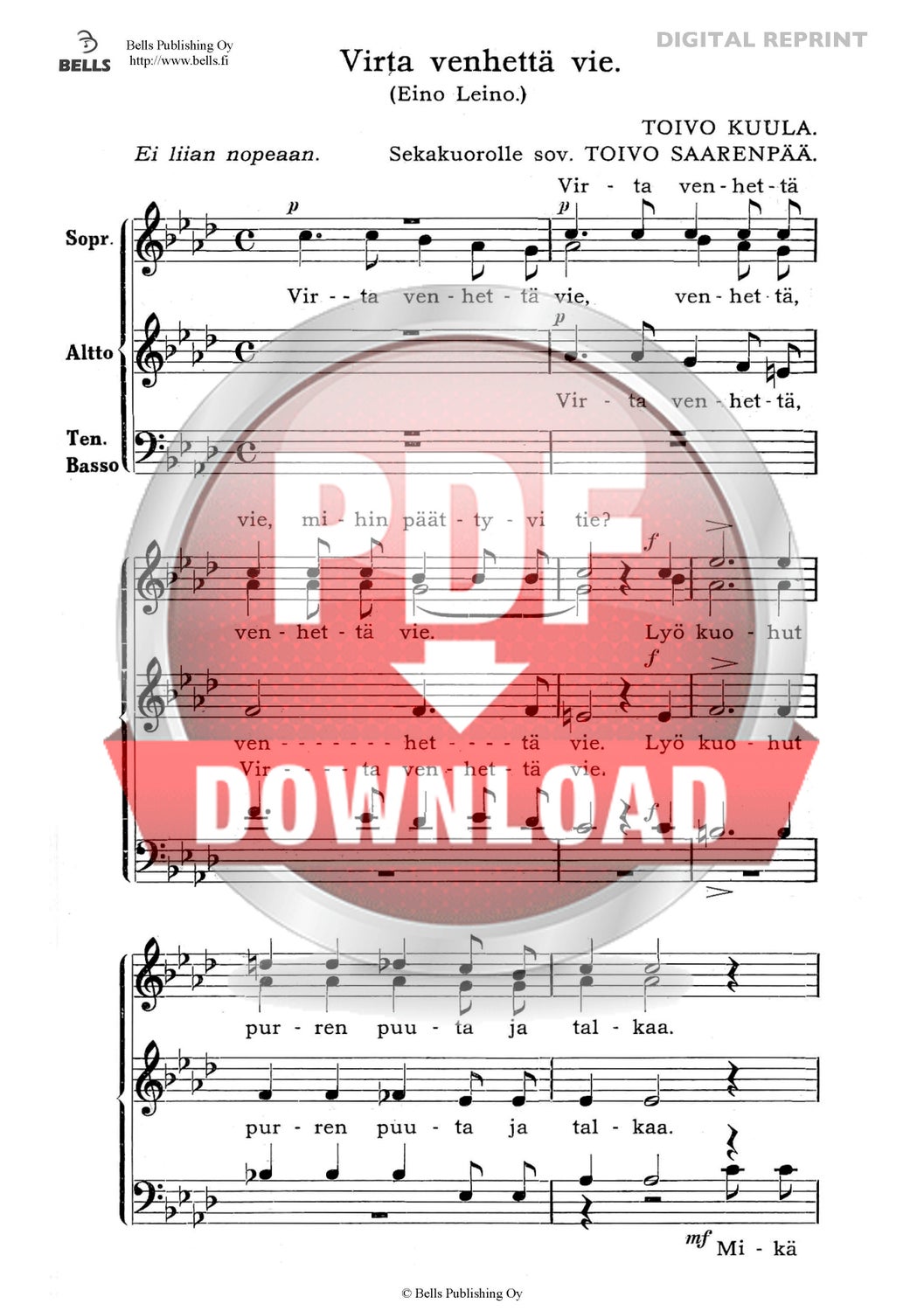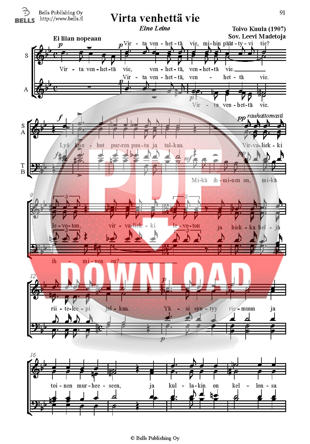 Kuula, Toivo (Arr. Toivo Saarenpää): Virta venhettä vie (Gemischten Chor)