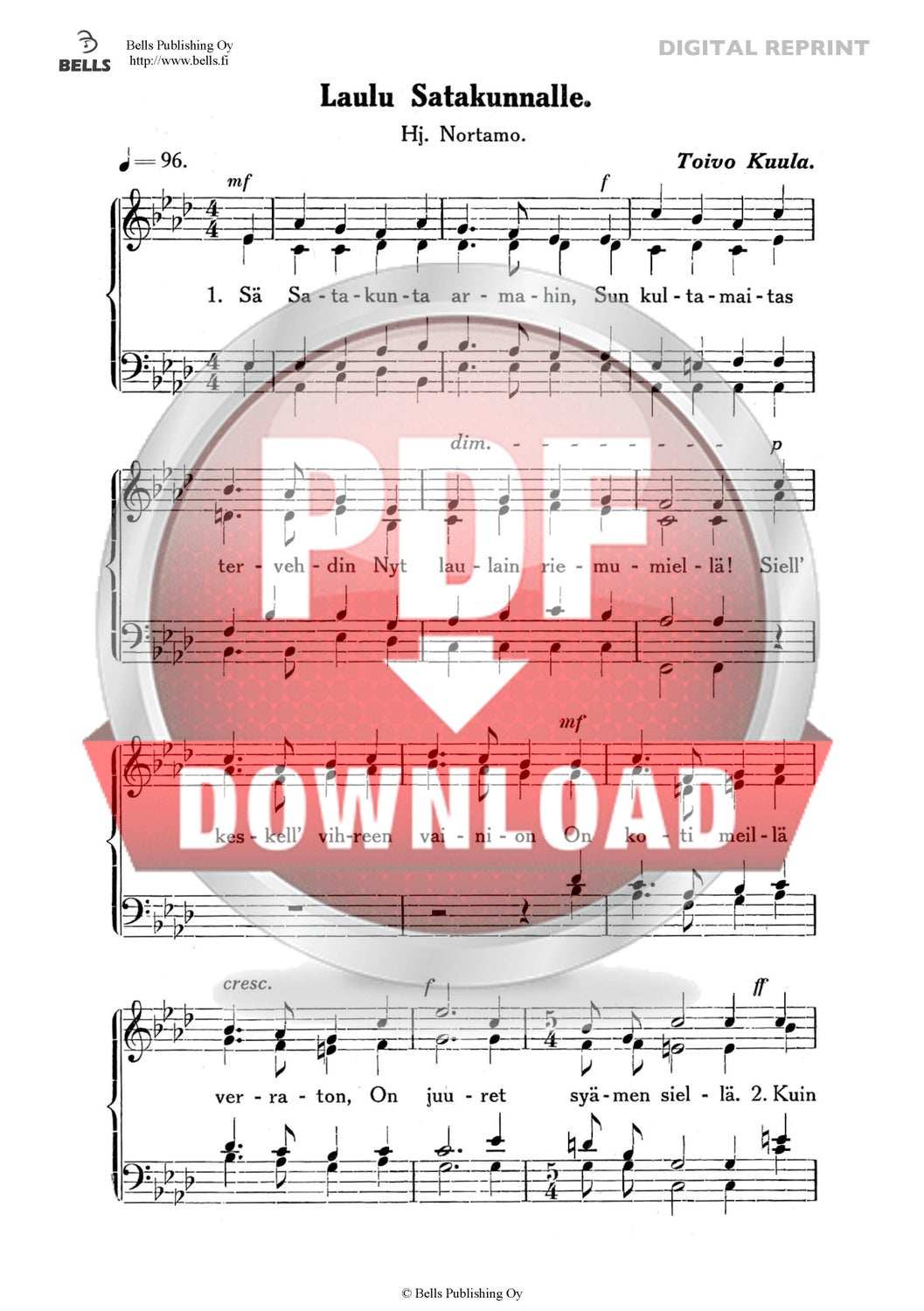 Kuula, Toivo: Laulu Satakunnalle (Gemischten Chor)