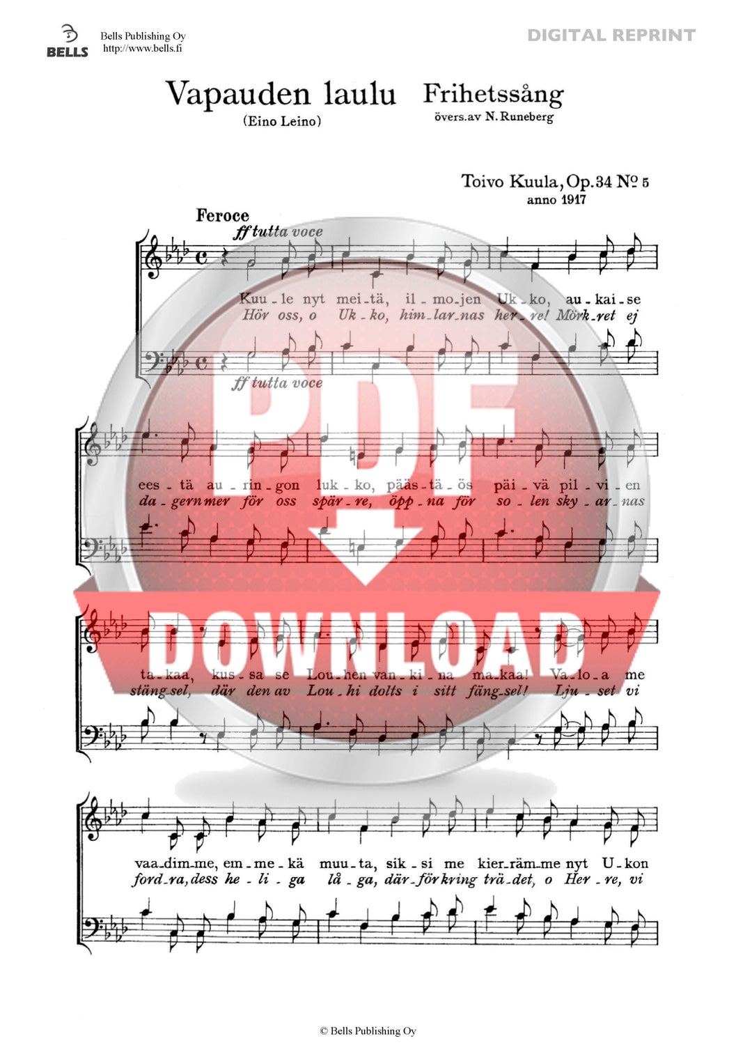 Kuula, Toivo: Vapauden laulu, Op. 34 Nr. 5