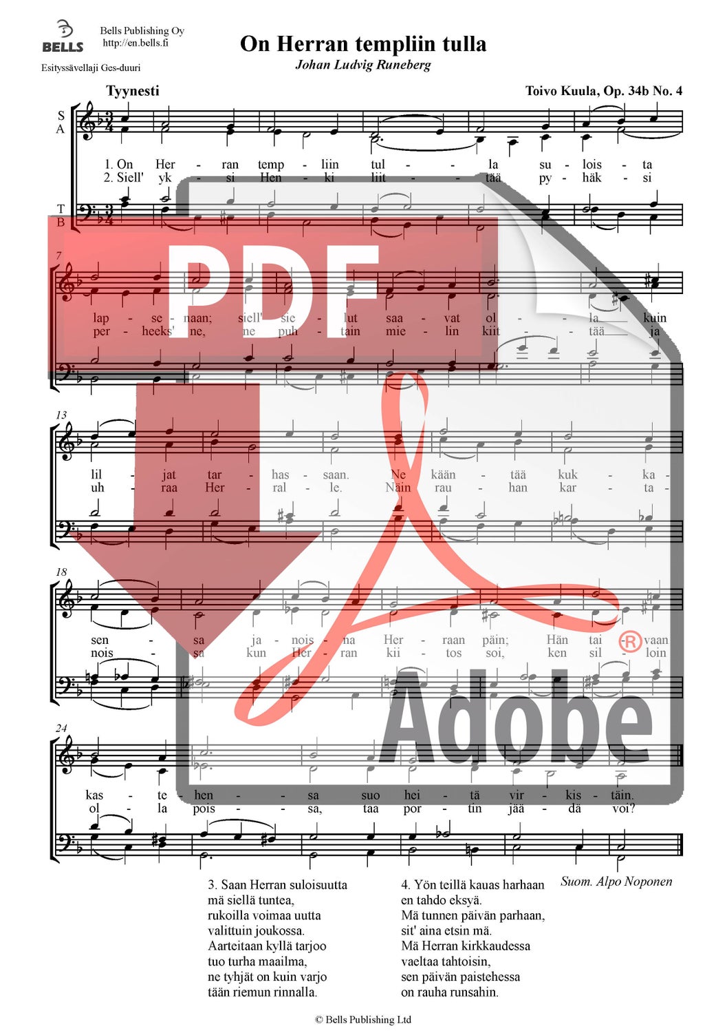 Kuula, Toivo: On Herran templiin tulla, Op. 34b Nr. 4 (Gemischter Chor)
