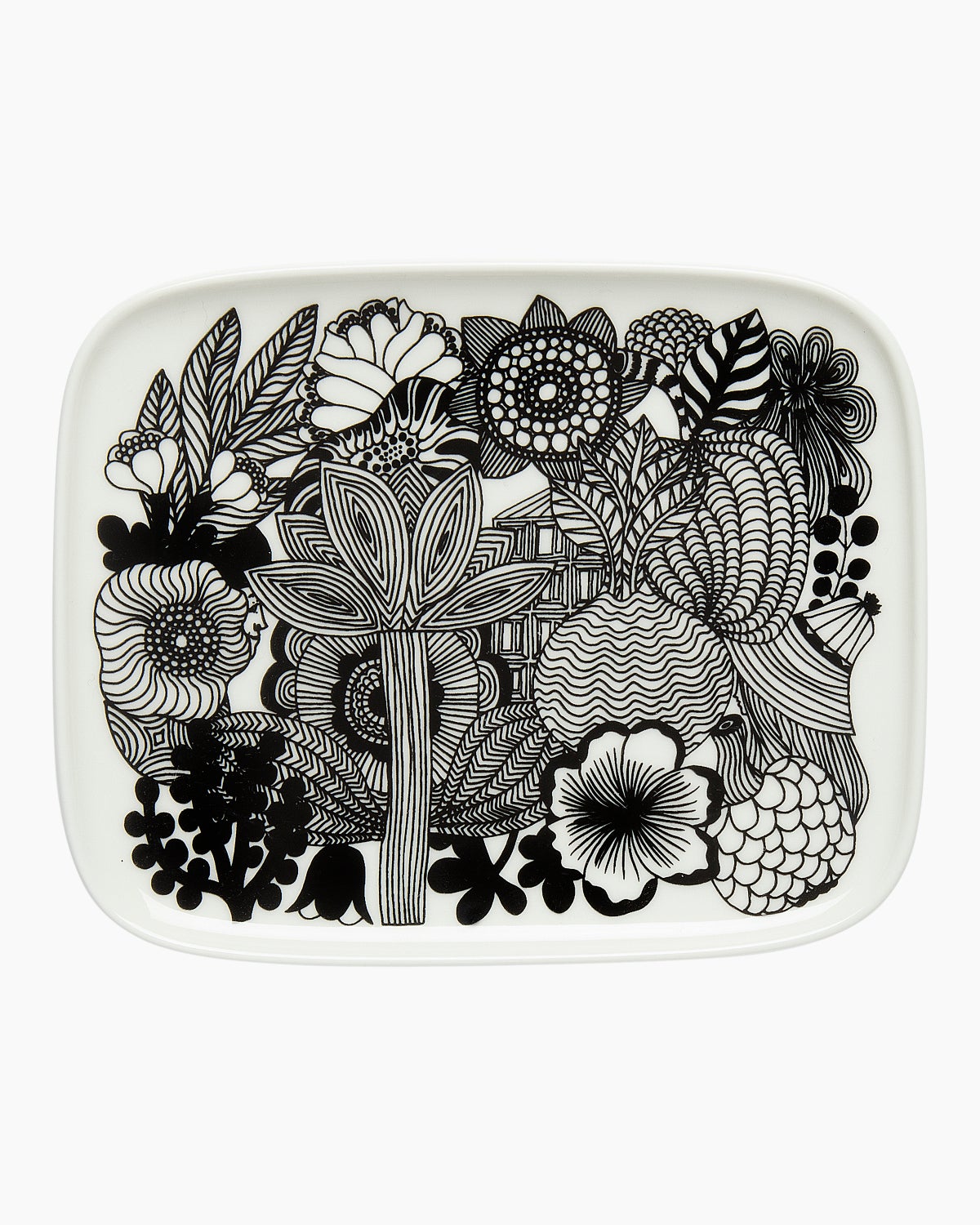 Oiva / Siirtolapuutarha lautanen, 15x12 cm, valkoinen-musta