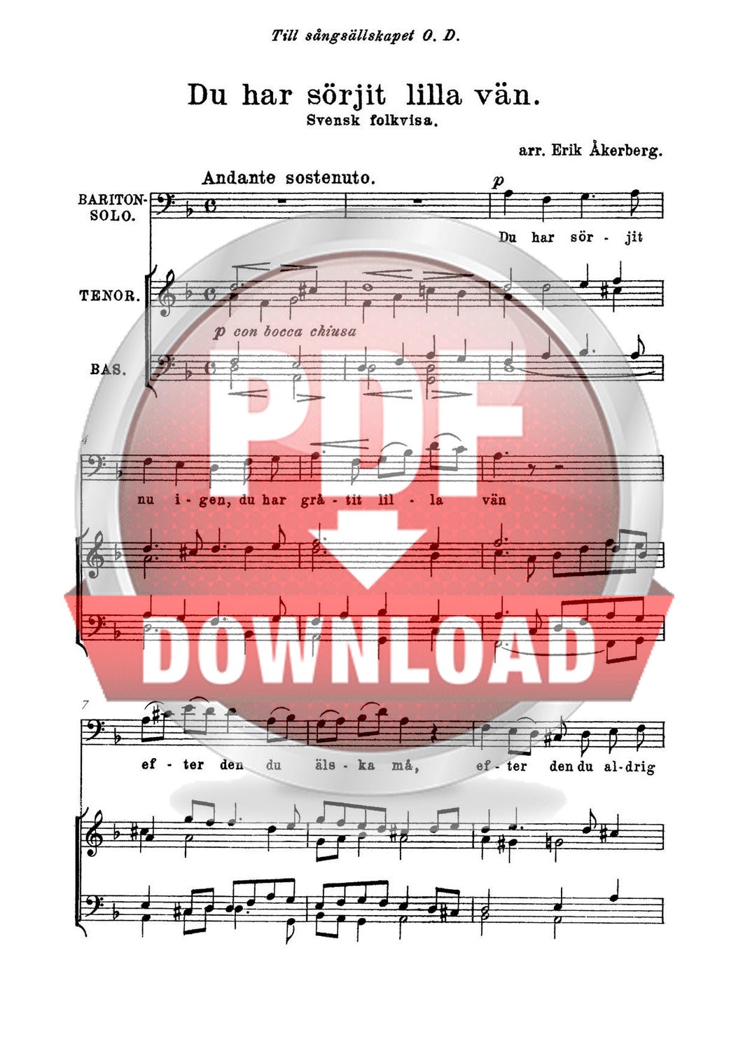 Trad. (Arr. Erik Åkerberg): Du har sörjit lilla vän (Männerchor)