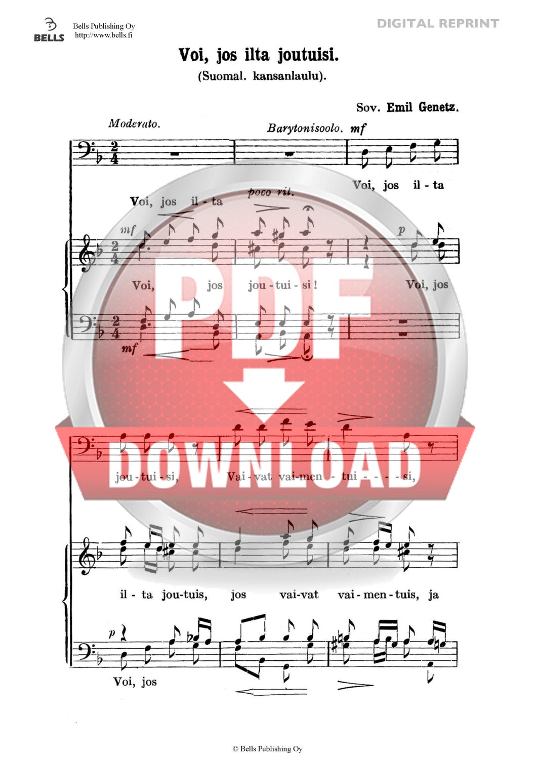 Trad. (Arr. Emil Genetz): Voi, jos ilta joutuisi