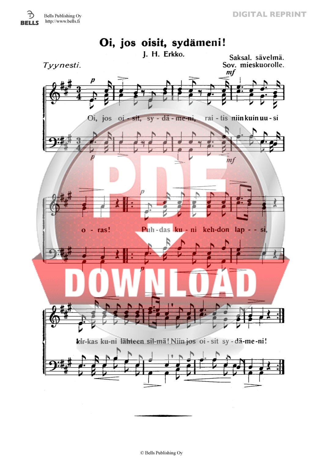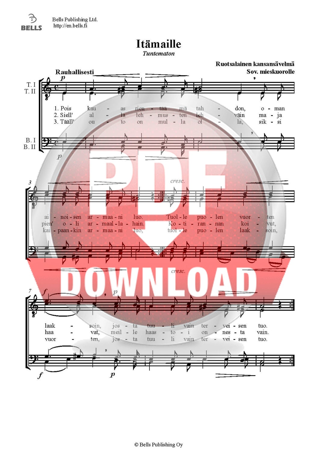 Trad. (Arr. Primus Leppänen): Eteläpohjalainen kansanlaulu (Männerchor)