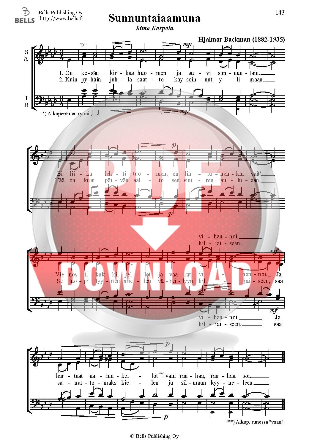 Backman, Hjalmar: Sunnuntaiaamuna (Gemischter Chor)