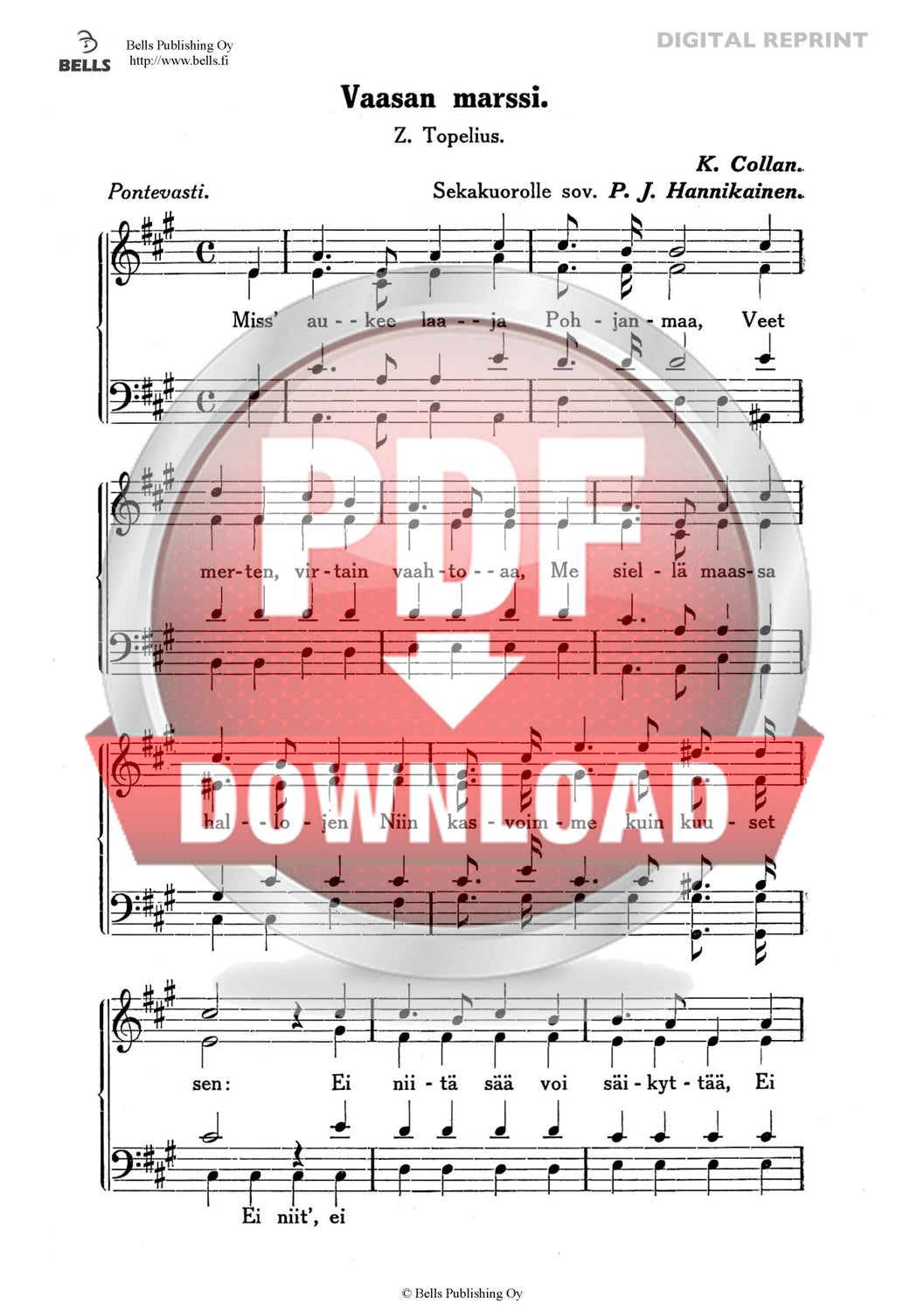 Collan, Karl (Arr. P. J. Hannikainen): Vaasan marssi (Gemischten Chor)